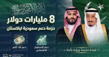 أعلنت المملكة العربية السعودية اليوم الخميس، 16 أبريل 2026 (الموافق 29 شوال 1447 هـ)، عن صدور توجيهات كريمة من خادم الحرمين الشريفين الملك سلمان بن عبدالعزيز آل سعود، وصاحب السمو الملكي الأمير محمد بن سلمان بن عبدالعزيز آل سعود، ولي العهد رئيس مجلس الوزراء -أيدهما الله-، بتقديم حزمة دعم مالي جديدة لتعزيز استقرار الاقتصاد في جمهورية باكستان الإسلامية الشقيقة.