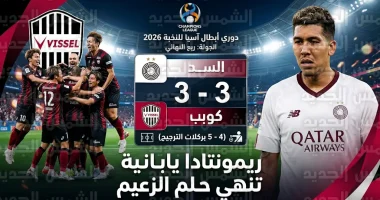 ودّع نادي السد القطري منافسات دوري أبطال آسيا للنخبة لعام 2026 من دور ربع النهائي، عقب خسارته القاسية أمام فيسيل كوبي الياباني بركلات الترجيح بنتيجة 5-4، في لقاء حبس الأنفاس جرى اليوم الخميس 16 أبريل 2026، ورغم تقدم “الزعيم” القطري بثلاثة أهداف مقابل هدف حتى الدقيقة 74، إلا أن الفريق الياباني نجح في العودة من بعيد وفرض الأشواط الإضافية ثم حسم التأهل عبر “ركلات الحظ”.