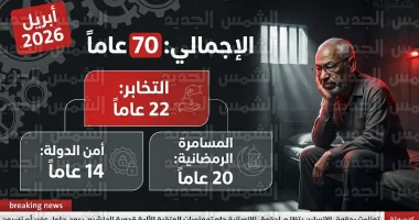 تجاوز إجمالي الأحكام الصادرة بحق راشد الغنوشي 70 عاماً في قضايا متنوعة تشمل التخابر، التآمر على أمن الدولة، والتمويل الأجنبي غير المشروع.