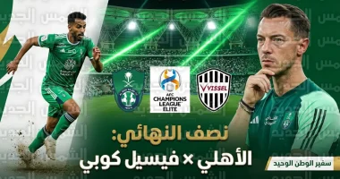 | الأهلي السعودي × فيسيل كوبي | نصف نهائي دوري أبطال آسيا للنخبة | الإثنين 20 أبريل 2026 | ملعب “الإنماء” – جدة |