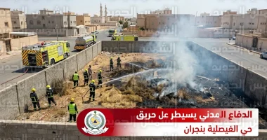 الدفاع المدني في نجران يسيطر على حريق حي الفيصلية ويمنع تمدده للمناطق السكنية