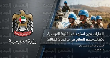 أدانت دولة الإمارات العربية المتحدة بأشد العبارات، اليوم السبت 18 أبريل 2026، الهجوم الإرهابي الذي استهدف الكتيبة الفرنسية العاملة ضمن قوة الأمم المتحدة المؤقتة في لبنان (اليونيفيل)، مؤكدة تضامنها الكامل مع البعثة الدولية في أداء مهامها لحفظ السلام.