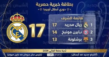 يواصل نادي ريال مدريد الإسباني تعزيز رقمه القياسي كأكثر الأندية ظهوراً في المربع الذهبي لبطولة دوري أبطال أوروبا عبر التاريخ، رغم وداعه للنسخة الحالية من الدور ربع النهائي، وتعكس هذه الأرقام الهيمنة المطلقة للنادي الملكي على البطولة القارية الأغلى، لا سيما مع وصول البطولة إلى مراحلها الحاسمة في شهر أبريل 2026.