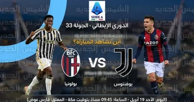 يستعد عشاق الكرة الإيطالية لمتابعة مواجهة قوية تجمع بين يوفنتوس ونظيره بولونيا، اليوم الأحد 19 أبريل 2026، على أرضية ملعب “أليانز ستاديوم” بتورينو، وذلك ضمن منافسات الجولة الثالثة والثلاثين من الدوري الإيطالي (الكالتشيو) لموسم 2025-2026، يسعى “البيانكونيري” في لقاء اليوم لتأمين تواجده في المربع الذهبي، بينما يطمح بولونيا لمواصلة عروضه القوية هذا الموسم.