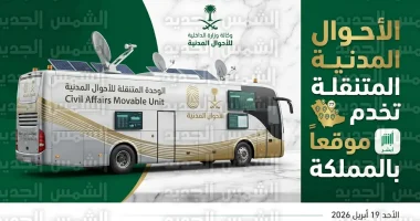 أطلقت وكالة وزارة الداخلية للأحوال المدنية، اليوم الأحد 19 أبريل 2026 (الموافق 2 ذو القعدة 1447 هـ)، وحداتها المتنقلة لتقديم خدمات السجل المدني في 77 موقعاً مختلفاً بمناطق المملكة العربية السعودية، تأتي هذه الخطوة لتعزيز الوصول إلى المستفيدين في أماكن تواجدهم، وتوفير الوقت والجهد على سكان المحافظات والقرى البعيدة، بالإضافة إلى منسوبي القطاعات الحكومية والخاصة.