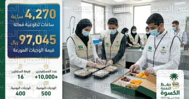 أعلنت جمعية “خيرات” لحفظ النعمة عن الحصيلة الإحصائية لمنجزات العمل التطوعي خلال الربع الأول من العام الجاري 2026، مؤكدة نجاح خططها في تعزيز ثقافة المسؤولية المجتمعية والحد من الهدر الغذائي، تماشياً مع مستهدفات رؤية السعودية 2030 في الوصول إلى مليون متطوع.