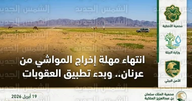 أعلنت هيئة تطوير محمية الملك سلمان بن عبدالعزيز الملكية، اليوم الأحد 19 أبريل 2026 (الموافق 2 ذو القعدة 1447 هـ)، عن انتهاء المهلة الرسمية التي مُنحت لملاك الإبل والمواشي السائبة لإخراجها من منطقة “عرنان”، وبدأت الفرق الميدانية المتخصصة فوراً في تنفيذ عمليات الإخلاء والحصر، تمهيداً لتطبيق الإجراءات النظامية بحق المتجاوزين.