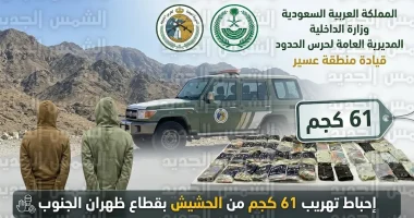 حرس الحدود بعسير يحبط محاولة تهريب 61 كيلوجراماً من مادة الحشيش في قطاع ظهران الجنوب