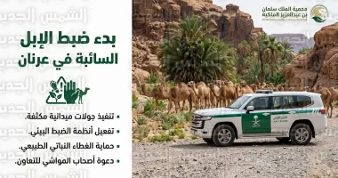 أعلنت هيئة تطوير محمية الملك سلمان بن عبدالعزيز الملكية عن انقضاء المهلة الرسمية الممنوحة لملاك المواشي السائبة لإخراج إبلهم من منطقة “عرنان” اليوم الأحد 19 أبريل 2026 (الموافق 2 شوال 1447هـ)، وبدأت الفرق الرقابية فوراً في تنفيذ عمليات الضبط الميداني وتطبيق الأنظمة البيئية بحق المخالفين.