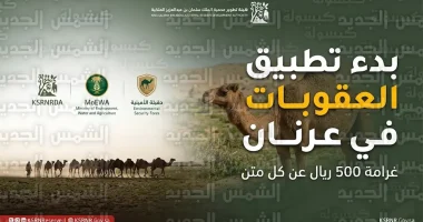 • الغرامات المالية: تبلغ غرامة رعي الإبل في المواقع المحظورة 500 ريال سعودي عن كل “متن” واحد يتم ضبطه.
