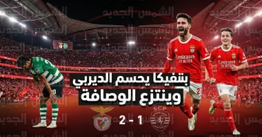 - النتيجة النهائية: بنفيكا 2 – 1 سبورتنج لشبونة.