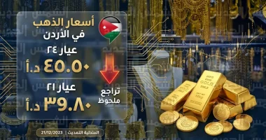 بالنسبة للراغبين في الاستثمار طويل الأجل، سجلت السبائك الذهبية عيار 24 في الأردن المستويات التالية: