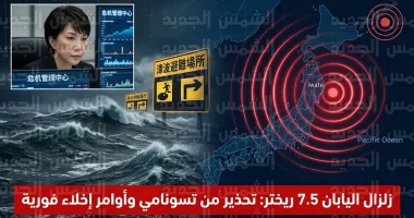 تعرضت مناطق شمال اليابان، مساء اليوم الاثنين 20 أبريل 2026، لهزة أرضية عنيفة بلغت قوتها 7.5 درجات على مقياس ريختر، مما أثار حالة من الاستنفار القصوى لدى السلطات اليابانية التي سارعت بإصدار تحذيرات من موجات مد بحري (تسونامي) قد تشكل خطراً كبيراً على المناطق الساحلية.