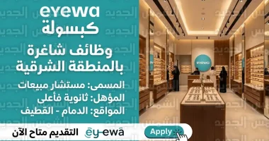 أعلنت شركة آيوا (Eyewa)، المتخصصة في قطاع النظارات والبصريات، عن توفر فرص وظيفية شاغرة للسعوديين والسعوديات تحت مسمى “مستشار مبيعات” (Sales Consultant) في فروعها بالمنطقة الشرقية، وتستهدف هذه الوظائف الكوادر الوطنية من حملة شهادة الثانوية العامة فما فوق، مع تقديم مزايا مالية وبيئة عمل محفزة.