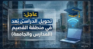 أصدرت الجهات التعليمية في منطقة القصيم قرارات عاجلة تقضي بتحويل الدراسة من حضورية إلى “عن بُعد” ليوم اليوم الثلاثاء 21 أبريل 2026م الموافق 4 شوال 1447هـ، وذلك نظراً لتقارير الأرصاد التي تشير إلى تقلبات جوية تستوجب الحيطة والحذر.