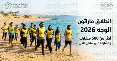 انطلاق فعاليات ماراثون الوجه 2026 بمشاركة أكثر من 500 متسابق على شاطئ الدرر بتبوك