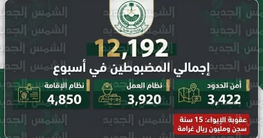 الداخلية السعودية تعلن ضبط 12192 مخالفاً لأنظمة الإقامة والعمل وأمن الحدود خلال أسبوع واحد بكافة المناطق