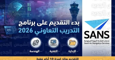بدأت شركة خدمات الملاحة الجوية السعودية (SANS) اليوم الأحد 26 أبريل 2026 (الموافق 08 ذو القعدة 1447هـ)، استقبال طلبات المتقدمين لبرنامج التدريب التعاوني المخصص لطلاب وطالبات الجامعات والكليات السعودية، يهدف هذا البرنامج إلى إتاحة الفرصة للكوادر الوطنية الشابة لاكتساب خبرات عملية في واحد من أكثر القطاعات حيوية في المملكة العربية السعودية، وهو قطاع الملاحة الجوية.