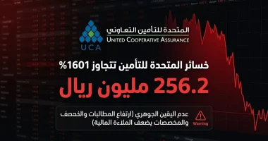 المتحدة للتأمين تسجل خسائر قياسية بـ 256.2 مليون ريال وقفزة تتجاوز 1601% بنهاية عام 2025