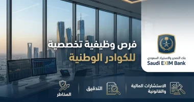 أعلن بنك التصدير والاستيراد السعودي اليوم الثلاثاء 28 أبريل 2026 (الموافق 10 ذو القعدة 1447هـ)، عن طرح فرص وظيفية تخصصية جديدة للكوادر الوطنية من ذوي الخبرة، للعمل في المقر الرئيسي للبنك بمدينة الرياض، وتأتي هذه الوظائف في إطار خطة البنك لتعزيز كفاءاته البشرية في قطاعات المخاطر، التدقيق، والاستشارات المالية والقانونية لدعم التوجهات الاستراتيجية للمملكة.