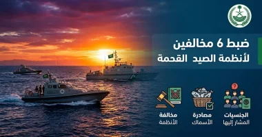 أعلنت المديرية العامة لحرس الحدود في منطقة عسير، اليوم الأربعاء 29 أبريل 2026 (الموافق 12 شوال 1447 هـ)، عن نجاح الدوريات الساحلية بمحافظة القحمة في ضبط (6) مخالفين لأنظمة الصيد والبيئة، وذلك في إطار جهودها المستمرة لحماية الثروات المائية الحية في مياه المملكة العربية السعودية.
