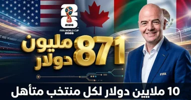 أعلن الاتحاد الدولي لكرة القدم (فيفا)، اليوم الأربعاء 29 أبريل 2026، عن تحديثات مالية تاريخية تتعلق بنسخة كأس العالم 2026 المقرر انطلاقها الصيف المقبل في الولايات المتحدة وكندا والمكسيك، وتقرر رسمياً رفع ميزانية الجوائز المخصصة للمنتخبات الـ48 المشاركة بنسبة 15%، ليصل إجمالي المبالغ المرصودة إلى 871 مليون دولار أمريكي، في خطوة تعكس الملاءة المالية القوية التي يتمتع بها الاتحاد.